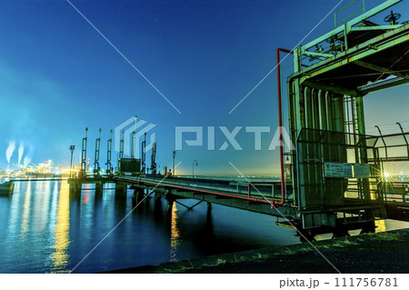 名古屋市、名古屋港9号地の桟橋と工場夜景