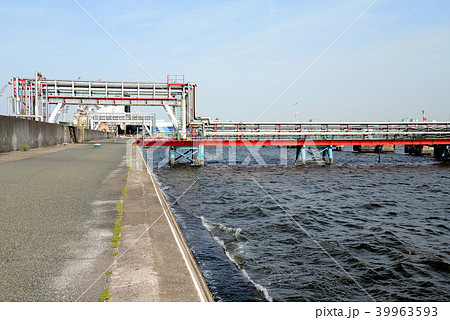 名古屋市港区 金城ふ頭線から眺める荒子川と名古屋港