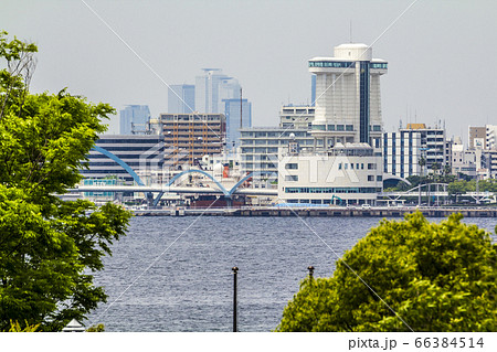 愛知県 名古屋都市風景 名古屋港潮見埠頭から見たガーデン埠頭方面