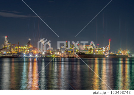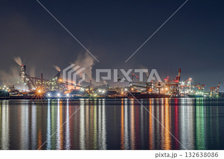 名古屋市、名古屋港9号地から眺める日本製鉄名古屋製鉄所の夜景