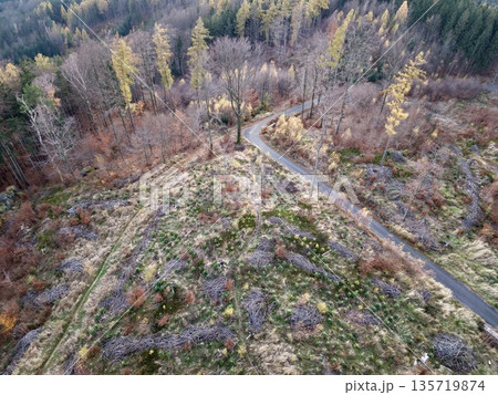 new growth emerges after harvest, sunlit landscape showing renewal and forestry restoration efforts