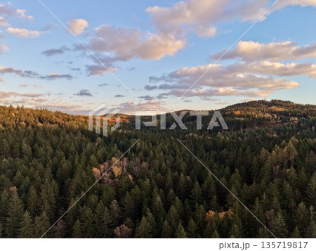 空模様 秋の真っ赤な秋の夕焼け 背景イメージ