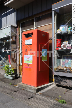 懐かしい赤色の丸型郵便ポスト