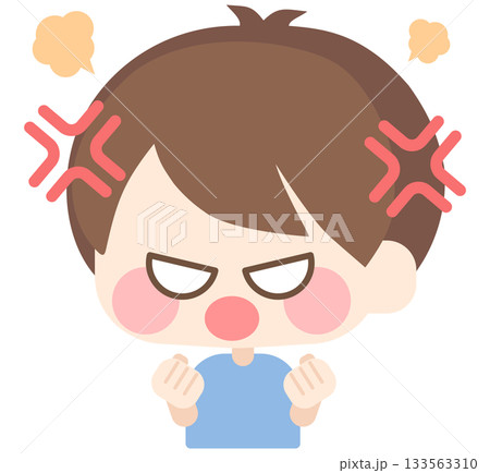 クレヨン画風人物_小学生_男の子_怒る