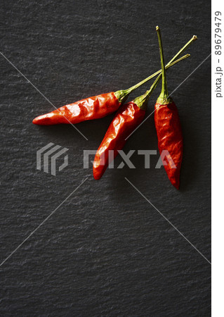 スレートボードに置かれた鷹の爪 唐辛子