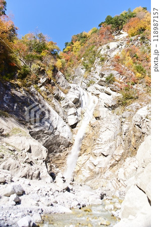 高瀬渓谷 美しい紅葉に包まれた濁沢の滝(白竜の滝) 長野県大町市