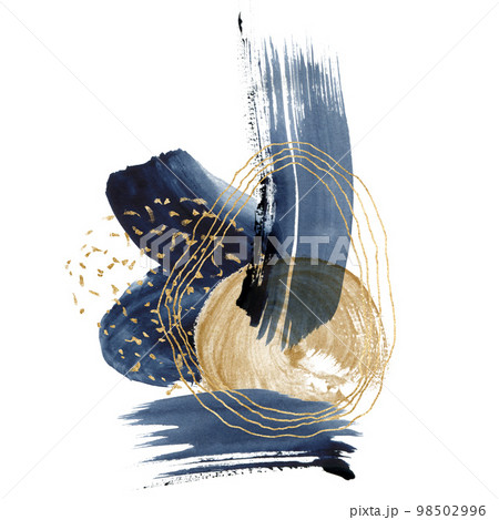 Watercolor dark blue and gold abstract card. Hand painted underwater card with ocean texture. Marine illustration for design, print, fabric or background.