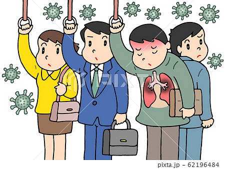 電車内でウイルス感染_飛沫_接触_咳_(パープル)