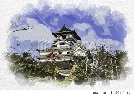 水彩画風 犬山城 天守閣 愛知県犬山市