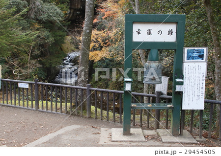 紅葉の清水渓流公園内、幸運の鐘と亀岩の洞窟