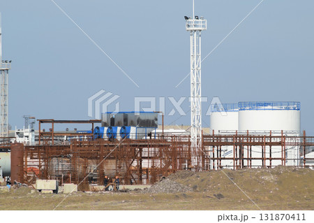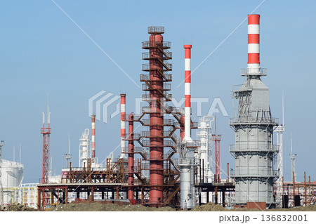Distillation columns, pipes and other equipment furnaces refinery.