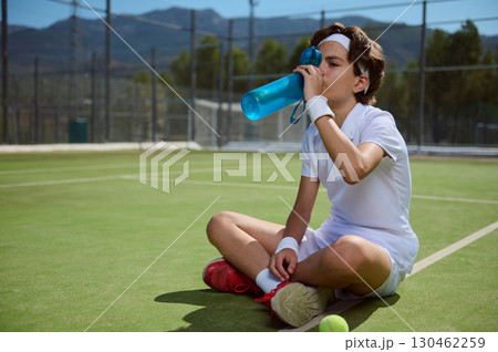 Young Tennis Player Resting and Rehydrating During Outdoor Training Session