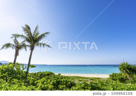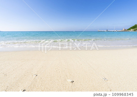 ブセナ海中公園の白い砂浜と青い海 沖縄県名護市