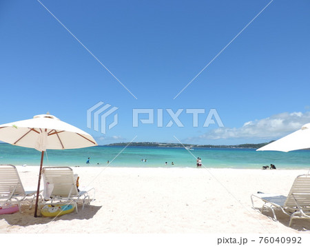 夏の沖縄 青い空に映える瀬底島の美しいビーチ