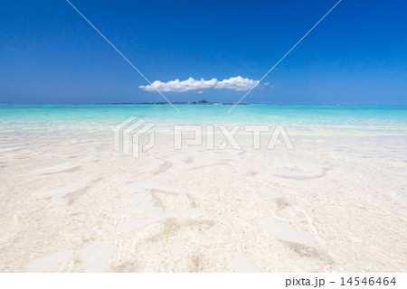 沖縄県国頭郡本部町瀬底 小さな離島水納島のカモメ岩のビーチから望むかもめ岩