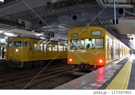 広島駅に停車中の山陽本線115系電車・103系電車