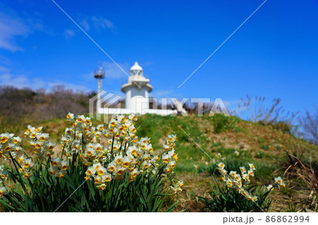 岡山県最南端・六島に咲く水仙と岡山県最古の灯台の六島灯台25 岡山県笠岡市