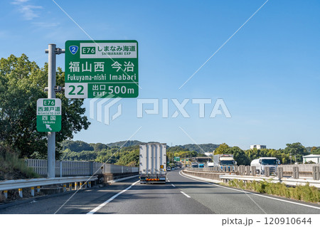 広島県福山市 山陽自動車道の福山西インターチェンジ出口付近を走行中のトラック