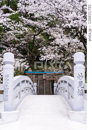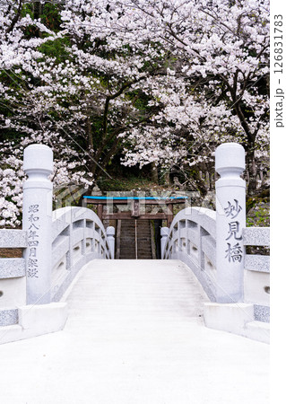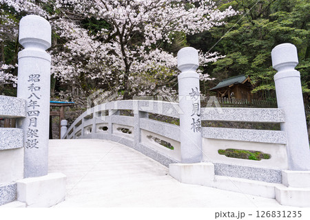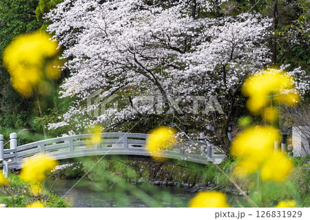 うららかな春日和に映える石橋と桜風景「豊かな田園風景の中にある神社と桜風景」(瀬田神社)大津町瀬田