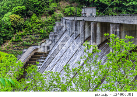 新緑の野洲川ダム風景