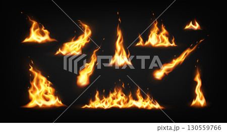 Set of Realistic Fire Flames on Black Background