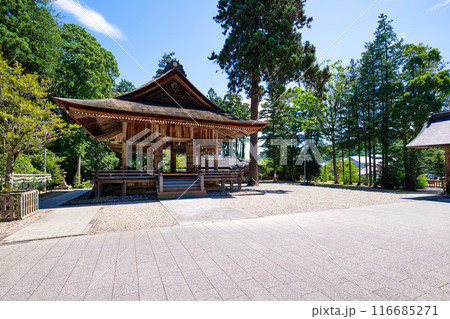 熊野大社 大社造の本殿と古代建築風の鑽火殿