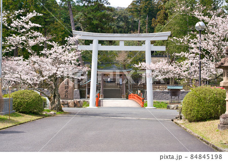 〈島根県〉春の熊野大社 神社前 桜と大鳥居と朱色の八雲橋