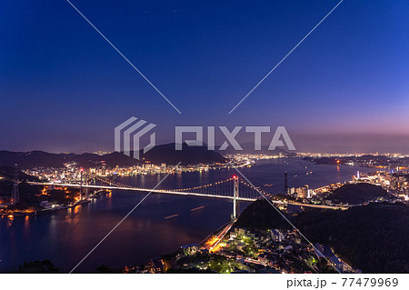 山口県下関市 火の山公園からの西方の六連島の夕景
