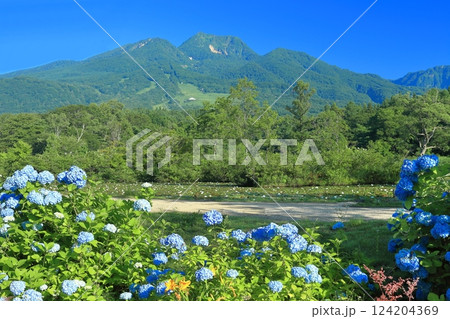 【新潟県】快晴の妙高山と紫陽花(いもり池)
