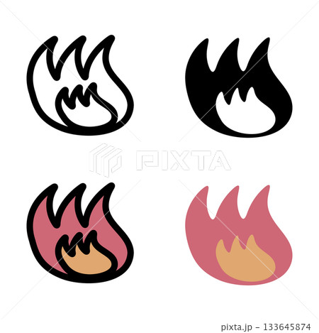 シンプルな炎のアイコンイラストセット