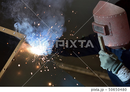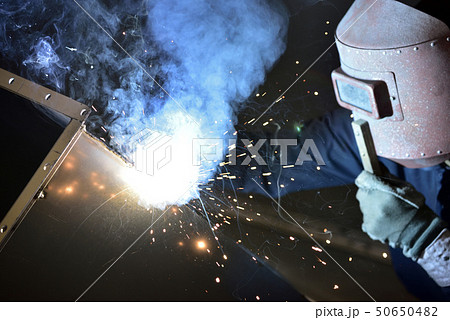 溶接作業をする町工場:アーク溶接