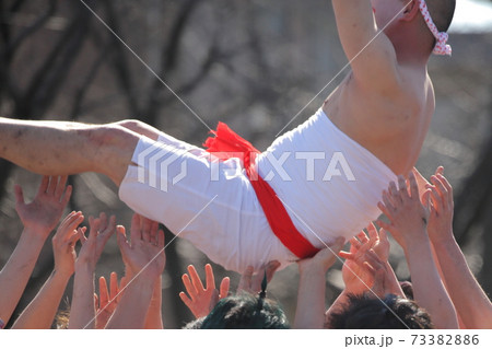 胴上げで祝う(今尾の左義長の火祭り 岐阜県海津市)