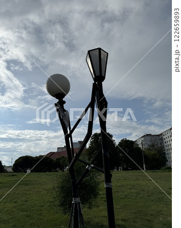 Artistic street lamps resembling a dancing couple