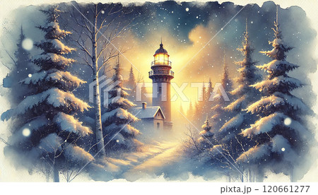 灯台のシンプルな線画イラスト、夏のアイソメトリックイラスト
