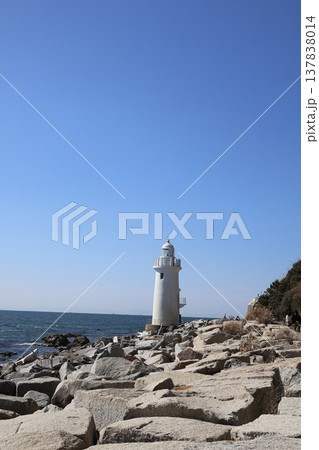 愛知県、青空と海の伊良湖灯台