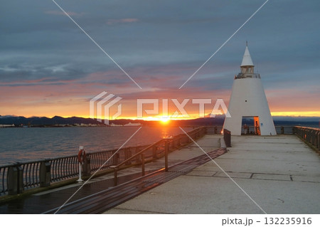 夕暮れの青森港北防波堤西灯台 青森