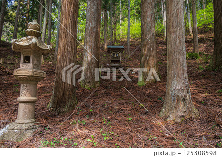 針葉樹林の中の小さな祠 おくやくし之社 長浜市