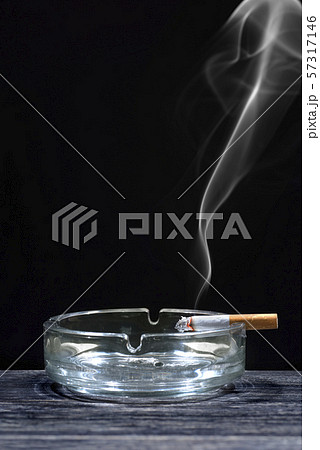 Cigarette on transparent ashtray