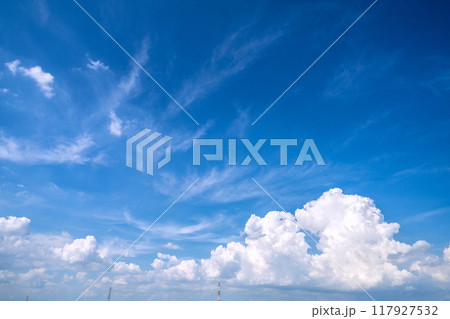 日本の横浜都市景観 夏空。猛烈な暑さが続く日本列島…送電線や巨大な入道雲…電気料金高騰…=8月15日