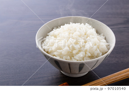 炊きたてのご飯 お茶碗 湯気と白米 イメージ素材