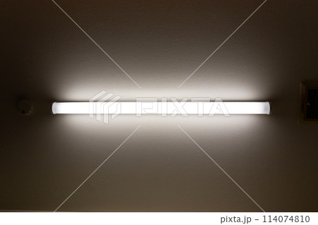 暗い部屋の中で点灯する直管型の照明器具