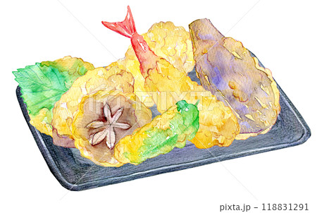 水彩イラスト 天ぷらの盛り合わせ