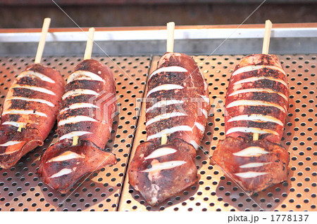イラスト素材、いか焼き、烏賊焼き、イカ焼き、手描き、いか焼、イカ焼、筆書き、手書き、小麦粉、筆描き、