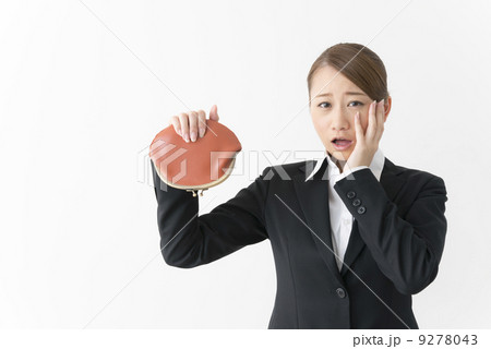 サイフを持つスーツ姿の女性