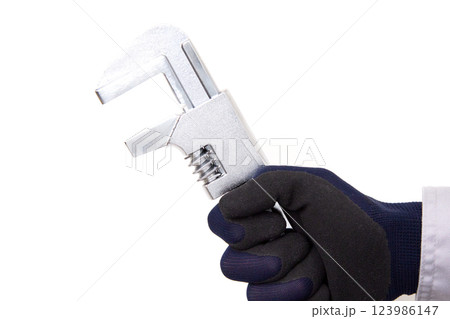 モーターレンチを握る手