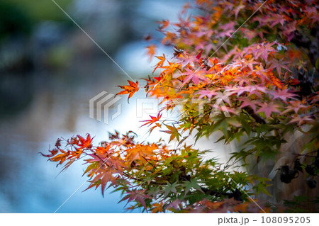 妙心寺・退蔵院の秋、カラフルに色づきはじめた余香苑の紅葉、池畔の風景