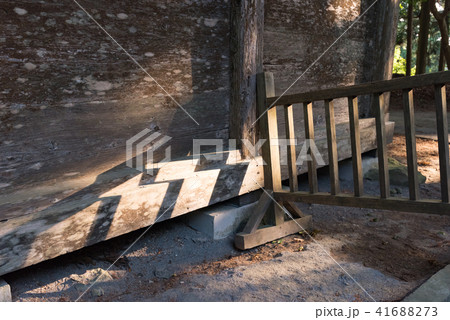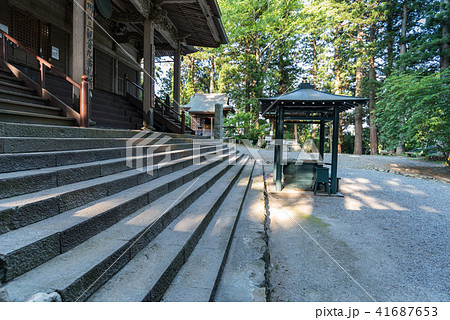 宮城涌谷箟岳山箟峯寺本堂階段と木漏れ日