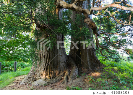 宮城涌谷箟岳山箟峯寺鎮守の森の踊る夫婦杉