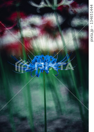 青い彼岸花のクローズアップ