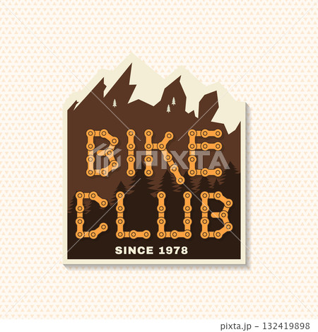Bicycle Club. Vector illustration. Concept for shirt or logo, print, stamp or tee. Vintage patch, sticker design with mountain and cycling chain. Extreme sport.
